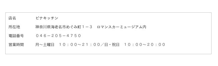 ビナキッチン店舗URL:https://www.odakyu-restaurant.jp/shop/ViNA_KITCHEN/ebina.html