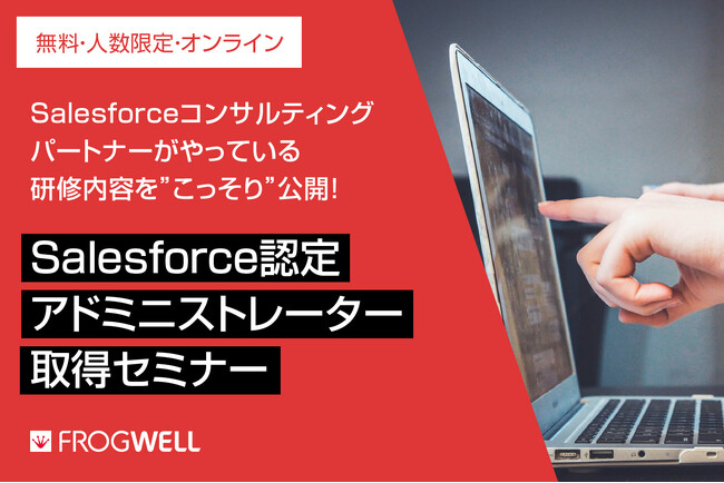 データ・プロセスのコンサルティングサービスを提供しているフロッグウェル株式会社は、Salesforce認定アドミニストレーター取得セミナーを3/21(木)、4/23(火)に無料開催いたします。