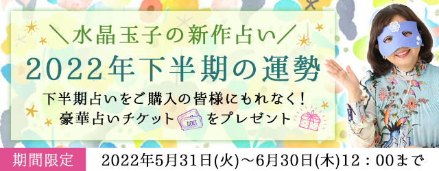 この度、月額公式サイト『水晶玉子 陰陽艶花占』にて『2022年下半期の運勢』キャンペーンを公開しております。2022年下半期の運勢をご購入の方にはもれなく豪華占いができるチケットをプレゼント中です。この機会をどうぞお見逃しなく!