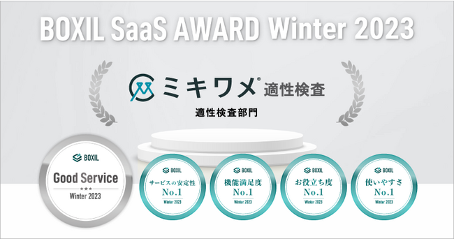 ミキワメ、「BOXIL SaaS AWARD Winter 2023」適性検査部門で「Good Service」他4つのNO.1に選出