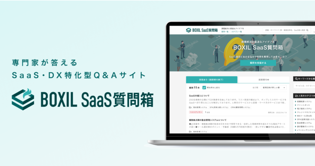 スマートキャンプ株式会社(本社:東京都港区、 代表:古橋智史、林詩音、以下「スマートキャンプ」)は、SaaS(※)選定時の悩みに専門家が回答するSaaS特化型Q&Aサイト「BOXIL SaaS質問箱」(以下「本サービス」)を正式に提供開始しました。