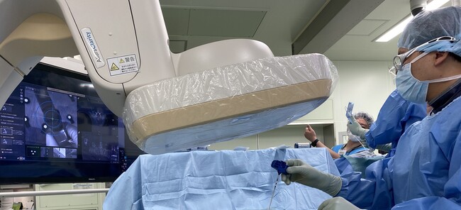 ひとつの部屋で血管撮影装置と手術台が組み合わさったハイブリッド手術室は、2013年にTAVI(経カテーテル大動脈弁植込術)が保険適用されたことをきっかけに広まり、現在は全国で約300台稼働しています。近年では、稼働率の向上を目指して循環器以外の手術での使用が増え、中でも脊椎手術への活用が注目を集めています。