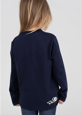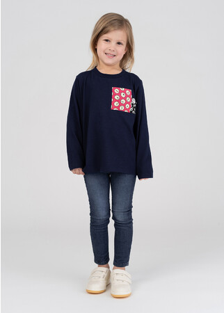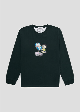 フロントはひみつ道具「タイムふろしき」に身を包んだジャイアンと、バックはあかちゃんになってしまったジャイアンが刺繍されています。ポケットと背当てが「タイムふろしき」柄なのも心くすぐるデザインです。風合いの良い天竺を使用した、長袖Tシャツ。胸ポケットと背当てはシャツ生地を使用しています。