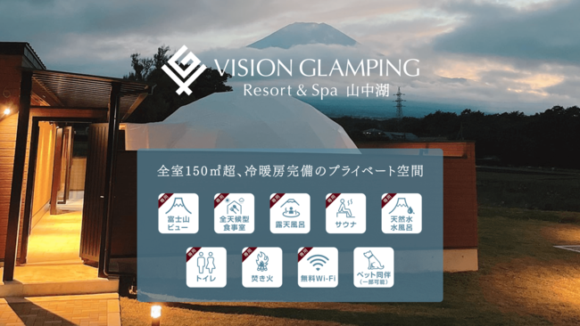山梨県山中湖村に2022年12月、全室完全プライベートスペースグランピング「 VISION GLAMPING Resort & Spa 山中湖 」が開業しました。