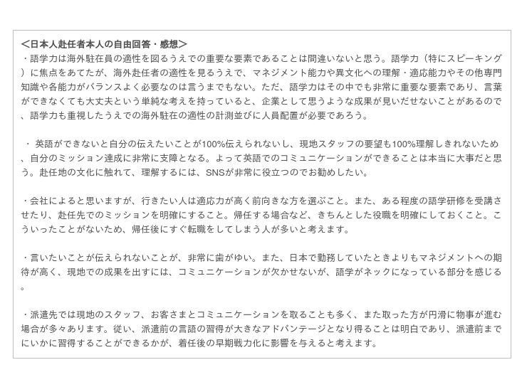 「日本人海外派遣者の英語活用能力とパフォーマンスに関する調査研究」