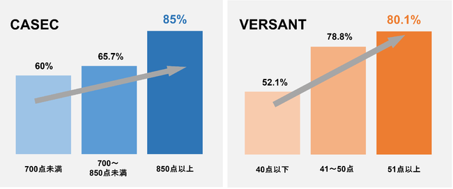 スコアが高ければ高いほどミッションの達成度も高くなり、特にスピーキング力に関して顕著に現れています。