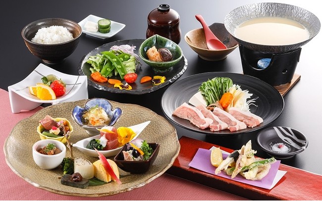 里山リゾート 烟河(けぶりかわ)で創作会席ランチ+入浴+往復JRがセットになったプラン。 (きょうと魅力再発見旅プロジェクト)