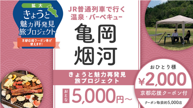 株式会社フォーティーズ(本社:大阪市鶴見区、代表取締役 岡武史)は7月31日迄延長になった「きょうと魅力再発見旅プロジェクト」の対象商品として里山リゾート 烟河(けぶりかわ)で創作ランチ+入浴+往復JRがセットになったパックツアーのオンライン販売を開始しました。
