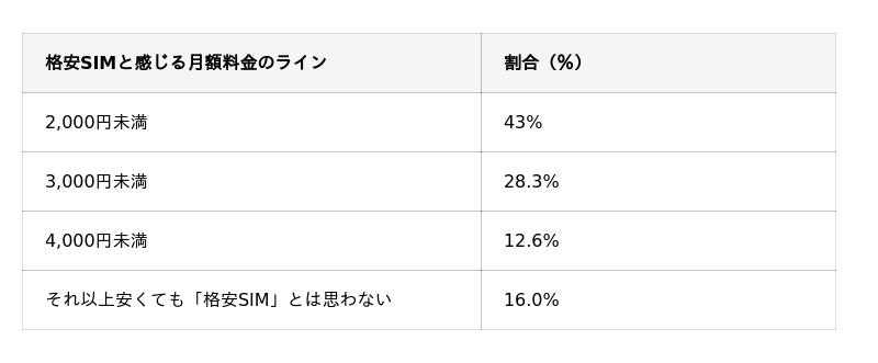 格安SIMと判断する基準は「3,000円未満」が多数派