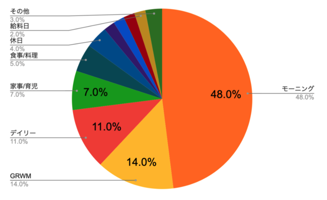 新生活シーズンである2022年3月13日〜4月12日の期間において視聴回数の多かったルーティン動画上位100件を調査したところ、「モーニングルーティン」と呼ばれる朝の時間のルーティンを切り取った動画が1位となりました。