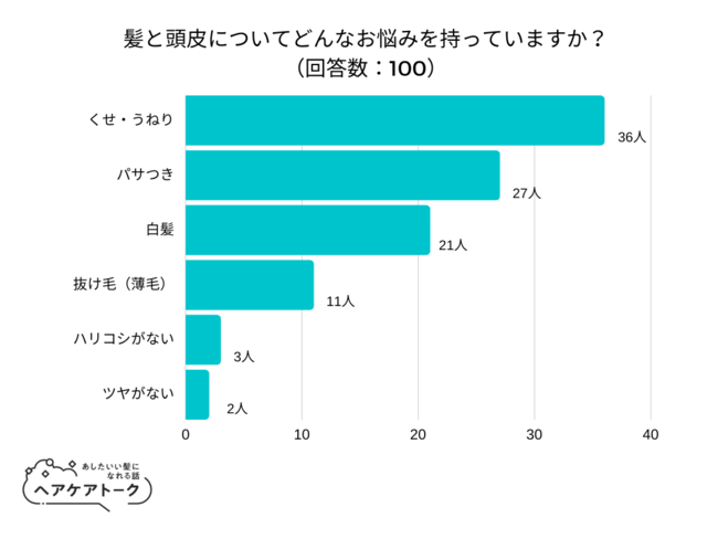 100人にアンケートを行ったところ、「くせ・うねり」と回答したのは全体の36%でした。