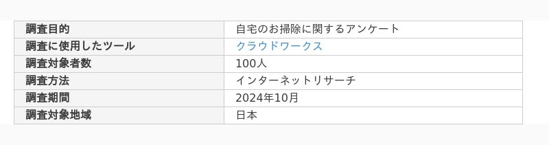 おうちにプロでは、ご自宅のお掃除でお悩みの方により有益な情報を提供するために、「おうちのお掃除に関するアンケート」を実施しました。アンケート調査の概要は以下の通りです。