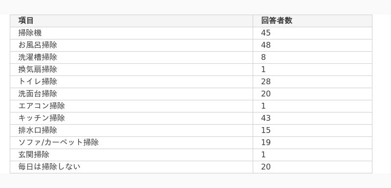 ・多くの人が毎日「掃除機がけ」「お風呂掃除」「キッチン掃除」を行っている。
