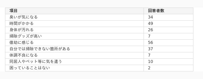 おうちのお掃除に関してお困りのことは何ですか?(複数回答可能)