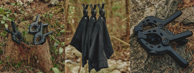キャンプや釣りのシーンで活躍するアウトドアクリップ。強力なバネを使用しているため、アウトドアでテントの組み立ての補助や、地面に置きたくないアイテムを引っ掛けて使用することが可能です。ブラックでシックなデザインのためアウトドアシーンに限らず、車に常備したり、洗濯バサミとして屋内での普段使いにも最適です。