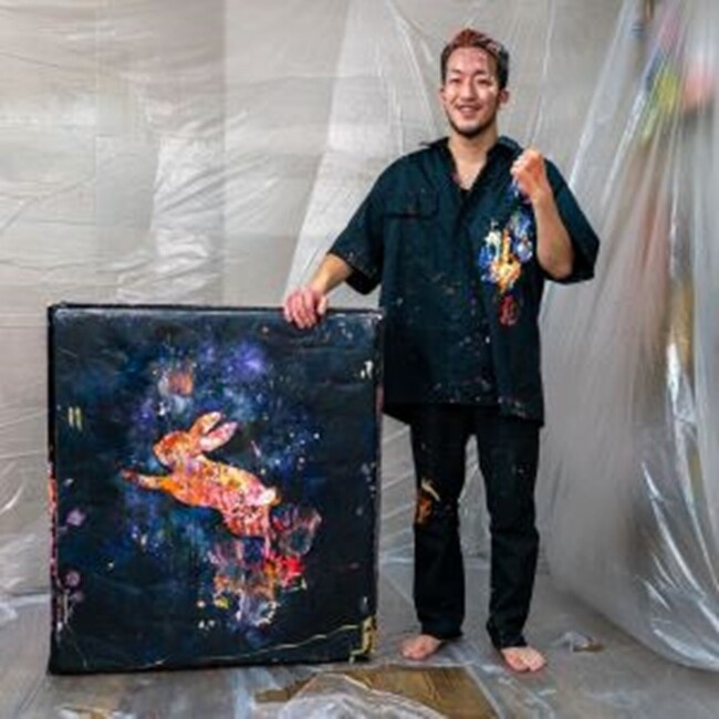 東さんは、身体に絵具を塗布し、拳、頭突き、蹴りを全力でキャンバスに叩き込む「アドレナリンアート」によって作品を製作する唯一無二のアーティストとして、展示会やライブペイントを軸に、各種メディアへの掲載・出演など幅広く創作活動を行っています。