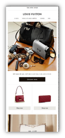 これらのウェブサイトは、すべてルイ・ヴィトンの正規サイトを装ったもので、どれも次のような件名の電子メールでリンクが拡散されました。「[black Friday sale] Louis Vuitton bags up to _% off! Shop online now!([ブラックフライデーセール]ルイ・ヴィトンのバッグが最大○○%オフ!今すぐオンラインでお買い求めを)」