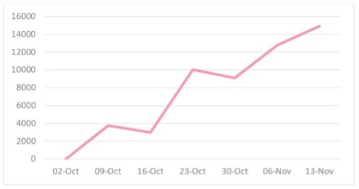 この1カ月間、こうしたドメインに関連するインシデントは増加しており、11月7日の週にはその数が15,000件近くに達しています。