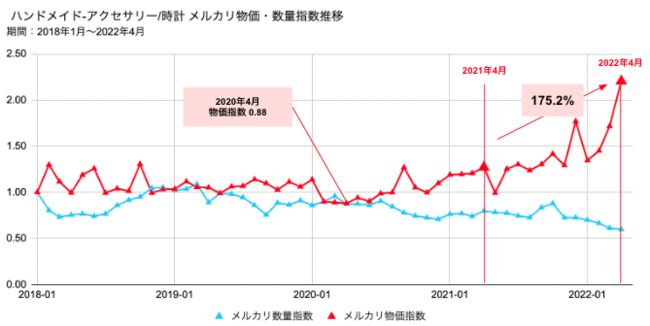 ハンドメイドカテゴリーの「アクセサリー/時計」の物価指数が過去最高に