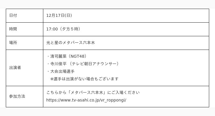 メタバース六本木で一夜限りの無料生配信!!イベント参加者が選手にインタビューできる企画も!!
