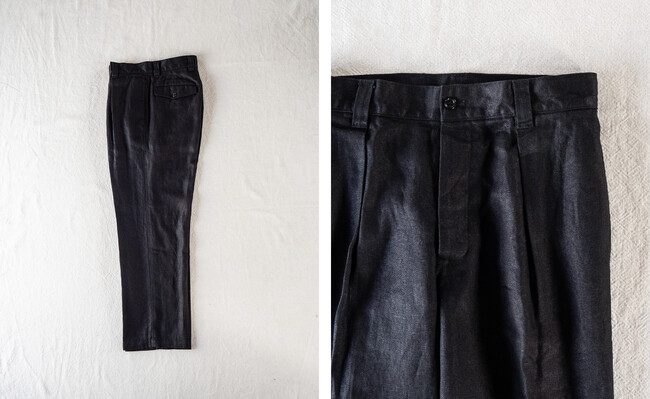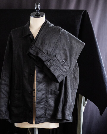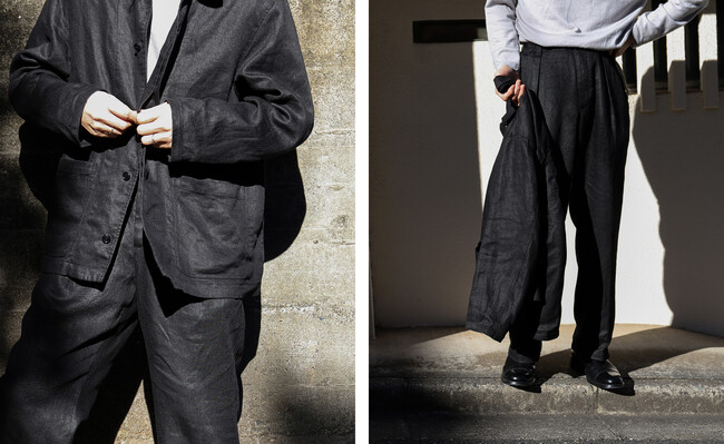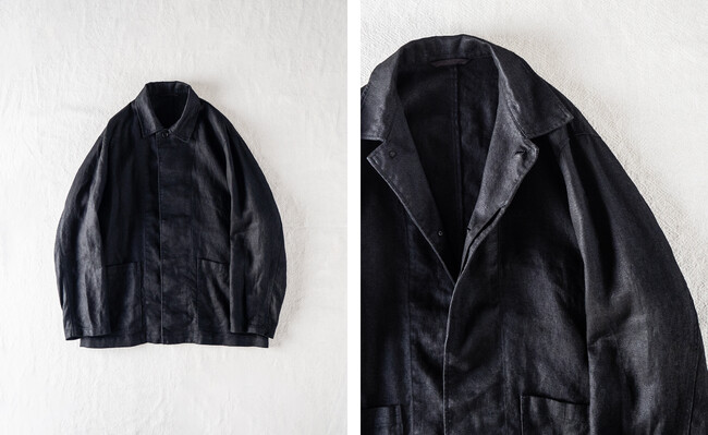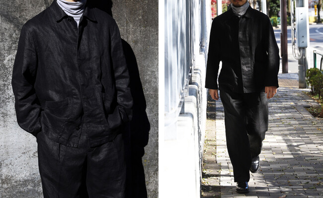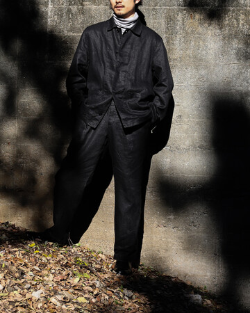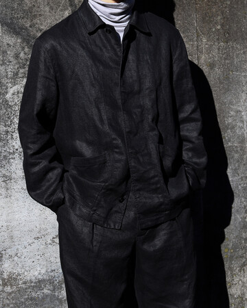 ?密度があることで艶が増したヘビーリネンツイル。ブラックカラーがもたらした?気にも感じられる上品な顔つきです。