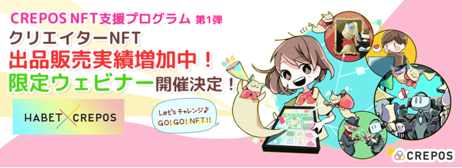クリエイターに新たな活躍の場を提供する「CREPOS NFT支援プログラム第1弾」参加クリエイターの出品・販売実績続々増加中!限定ウェビナー開催決定!