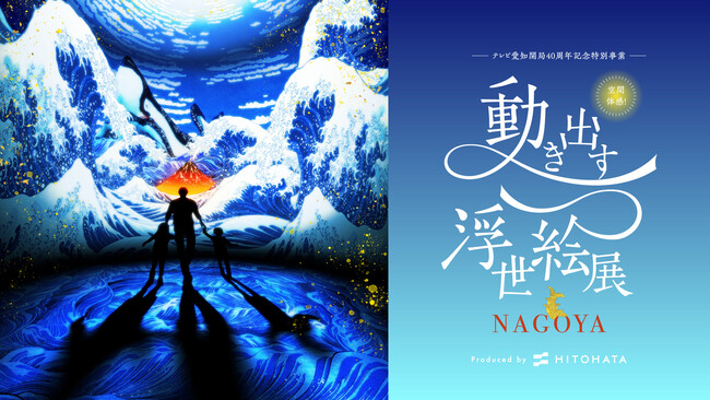 この催しは、テレビ愛知開局40周年記念特別事業として開催するもので、葛飾北斎、歌川国芳、歌川広重、喜多川歌麿、東洲斎写楽、歌川国貞など世界的な浮世絵師の作品300点以上をもとに、3DCGアニメーションやプロジェクションマッピングを駆使して大人から子どもまで楽しめるグラフィカルなデジタルアート作品として描き、6つの立体映像空間で浮世絵の世界に没入できる体感型デジタルアートミュージアムです。