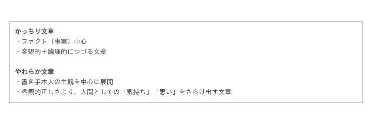 文章には、新聞のように論理的な「かっちり文章」と、ウェブに多く見られる、人柄のにじむ「やわらか文章」があります。
