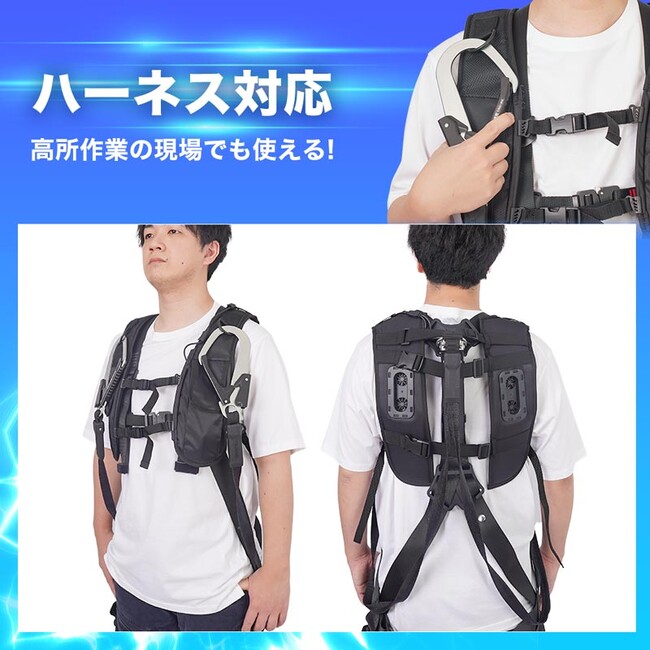 夏の過酷な作業時に冷却プレートで暑さ対策 高所作業時のハーネスに対応した