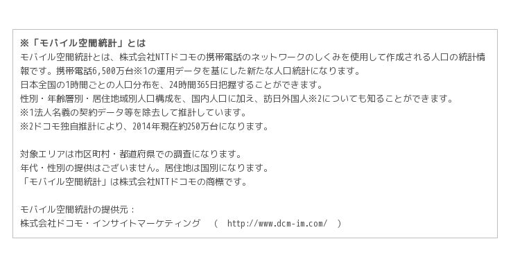 現在政府は、2020年の訪日外国人旅行者2,000万人到達に向けて様々な訪日施策を講じており、訪日外国人の来訪者数も過去最高を更新し続けています。このような状況の中で、国や都道府県だけでなく市区町村でも来訪促進施策、滞在環境の改善に乗り出していますが、市区町村単位では、来訪している外国人について得られるデータが少ないのが現状です。本分析は、株式会社ドコモ・インサイトマーケティングが提供する『モバイル空間統計※』を活用して、市区町村別に来訪者の国、時間別滞在状況を把握することで、各自治体・エリアにおける観光施策に寄与することを目的として実施しました。