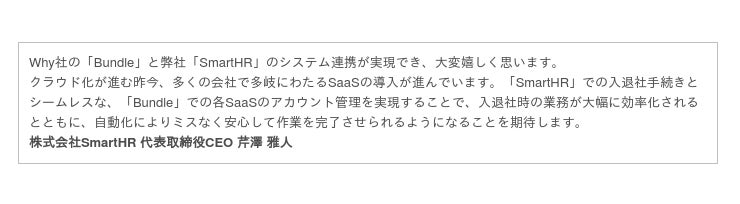SaaSのアカウント管理を自動化するツール「Bundle」とクラウド人事労務ソフト「SmartHR」がシステム連携し協業を開始