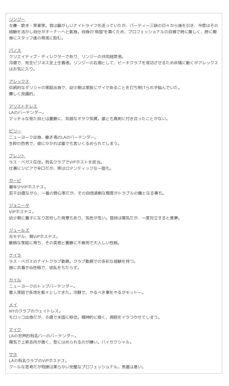ミコノス島での魅惑的なリゾート体験を提供すべく、LA、NYをはじめとするアメリカ各地の人気クラブから選び抜かれた精鋭スタッフを集めたものの、各自の個性が強すぎるゆえにいざこざやトラブルが頻発。