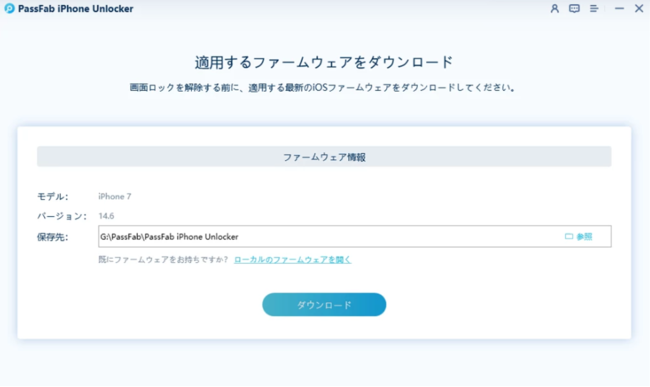 Step2:以下の画面のようにファームウエアのダウンロード画面が表示されます。ここで「ダウンロード」をクリックしてください。なお、ダウンロードには最低7Gのメモリーが必要です。