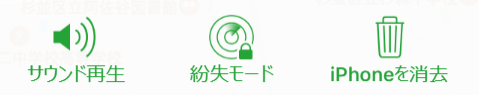 Step2:特定できると、iPhoneの場所がマップに表示されるので、該当のiPhoneをクリックします。するとiPhoneの名称と合わせて、以下のアイコンが表示されるので、ここで「iPhoneの消去」を選択します。これでiPhoneの初期化は完了です。