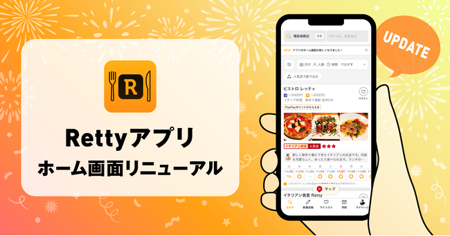 Retty株式会社(本社:東京都港区、代表取締役:武田 和也)は、ユーザーが行きたいお店を探しやすくなるように、実名口コミグルメサービスRettyアプリのホーム画面をリニューアルしました。今後もリニューアルを順次行っていく予定です。
