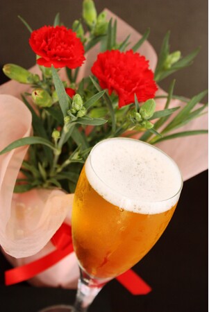 届いてすぐに出来たてビール、数日後に満開のカーネーション、と2段階で感謝の気持ちが伝わるギフトです。