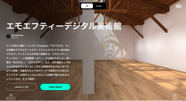 "Emo FT I tried it! -Popular manga artist x NFT-", a project in which professional manga artists who draw emo pictures seriously challenge the auction sale of Art NFT, is being broadcast on TV Asahi.
