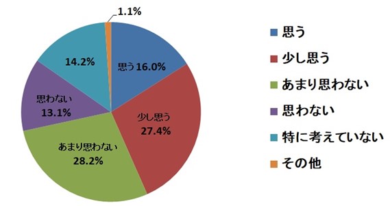 「思う」と「少し思う」の合計が43.4%、「あまり思わない」と「思わない」の合計が41.3%。いずれも全体の4割台で拮抗していました。