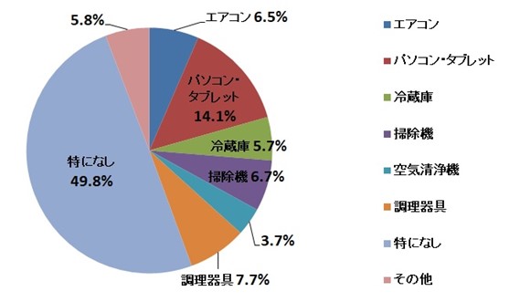 会社勤めの人は自宅でのテレワークが増え、お子さんも遠隔授業が増えたせいでしょうか。買い替えたいものでは「パソコン・タブレット」がトップですが、他の製品を合わせても全体の4割に届かず、約半数が「特になし」と回答しています。
