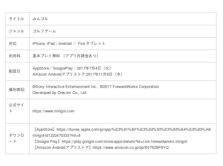 『みんゴル』は、「プレイステーション」を代表する作品の1つ「みんなのGOLF」(以下みんGOL)シリーズのスマートフォン向けゲームアプリケーションです。同シリーズは、世界シリーズ累計実売本数が1,400万本※2超え、国内では国民的ゴルフゲームとしてご好評いただいています。