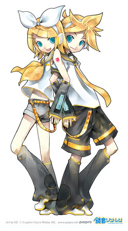 クリプトン・フューチャー・メディア株式会社が開発した、歌詞とメロディーを入力して誰でも歌を歌わせることができる「ソフトウェア」です。大きなリボンを着けたブロンドボブヘアが特徴的な14歳の女の子「リン」と、短く後ろに結ばれたブロンドヘアが特徴的な14歳の男の子「レン」の歌声が一緒に収録されています。