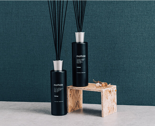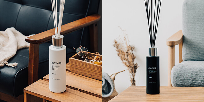 mottole(モットル)の人気リードディフューザーシリーズから、シックなボトルデザインの新アイテム「リードディフューザー WHITE/BLACK」が発売。