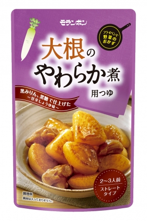 下ゆでの手間なく、焼き目をつけて煮込むだけで大根がやわらかく仕上がる煮物用つゆです。