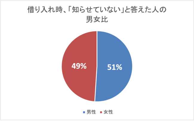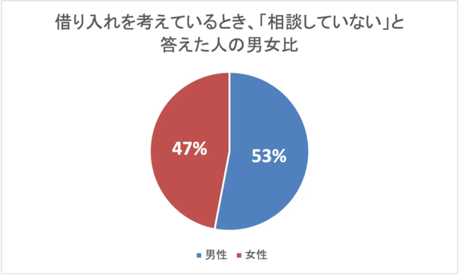 相談せずに借り入れを考えていた人は、男性が53%、女性が47%でした。