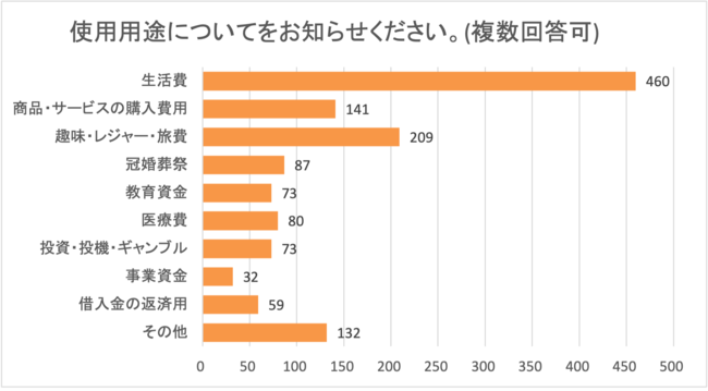 使用用途は生活費が最も多く、2番目に多いのは趣味・レジャー・旅費でした。