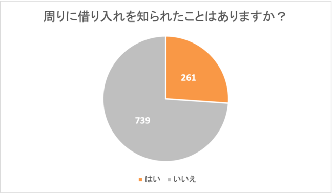 「借入を知られたことはありますか?」という問いに対し約3割の方が「はい」と回答しました。