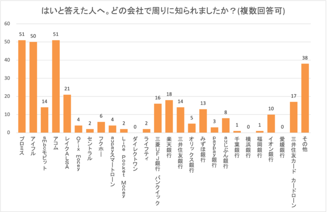 借入を周りに知られてしまった会社として、プロミス、アコム、アイフルが多いことがわかりました。