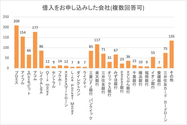 借入をお申し込みした会社はプロミスが最も多く、209人が借入をお申し込みしました。