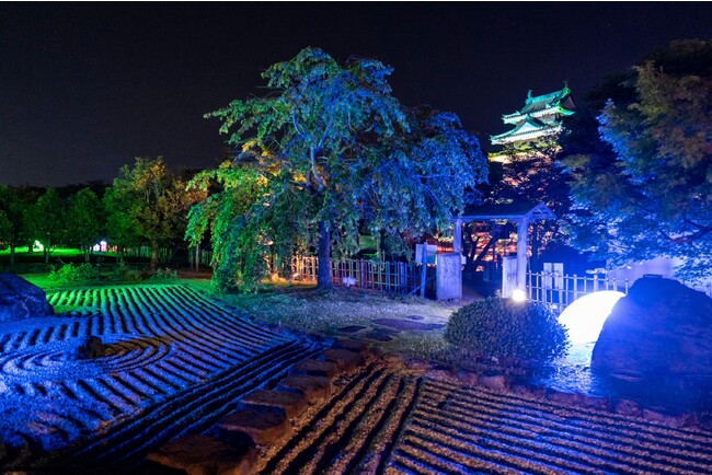 西尾城の本丸丑寅櫓や鍮石門に、初夏に咲き誇る西尾市のシンボルフラワー・バラなどの花々のデジタルアニメーションや西尾市の歴史や文化をテーマにした豪華絢爛な絵巻などのプロジェクションマッピング映像を投影。