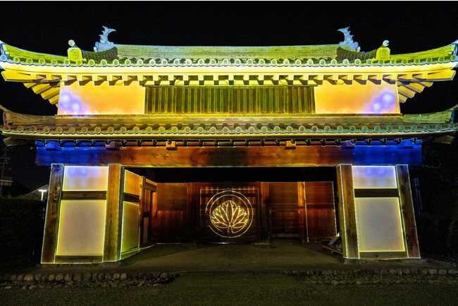 【内容】 西尾城の本丸丑寅櫓や鍮石門に、初夏に咲き誇る西尾市のシンボルフラワー・バラなどの花々のデジタルアニメーションや、西尾市の歴史や文化をテーマにした豪華絢爛な絵巻などのプロジェクションマッピング映像を投影しました。